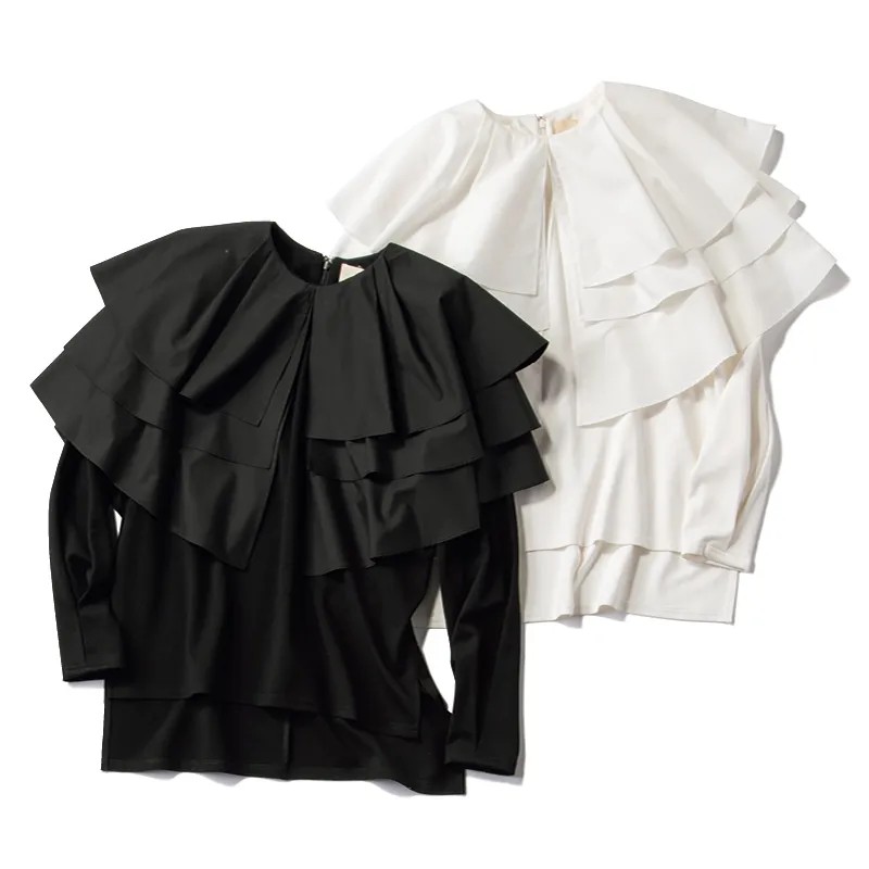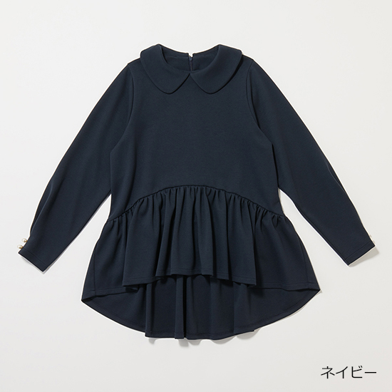 丸衿なのに子どもっぽく見えない、バックロングがモードな一枚