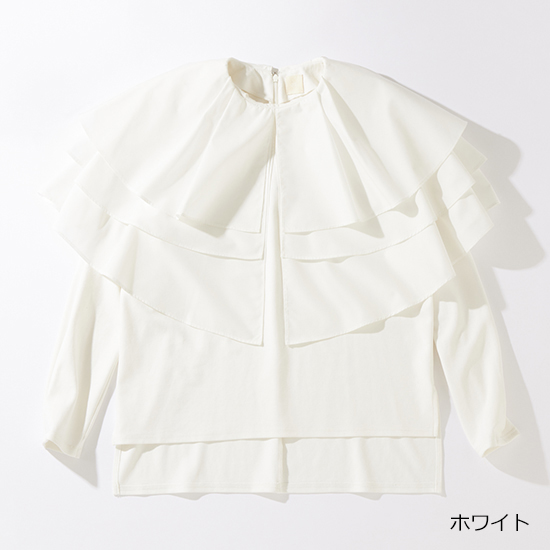 しわになりにくい生地を使ったペプラムブラウスは、カフスの裏側にギャザーゴムを入れてあるので機能性も抜群。ハレの日はアクシデントも起きやすいですが、そんな時にも笑顔で対応できそう。自宅で水洗い可能。ペプラムフレアブラウス¥18,700→¥12,100[35%off](スリースクエア)