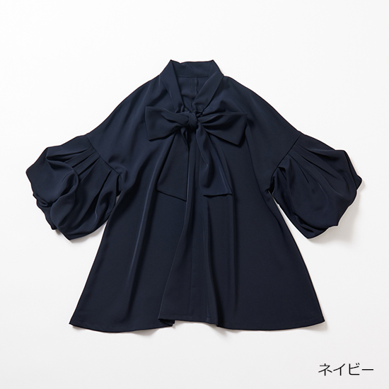 ジレにも合うボリューム袖のボウタイブラウス