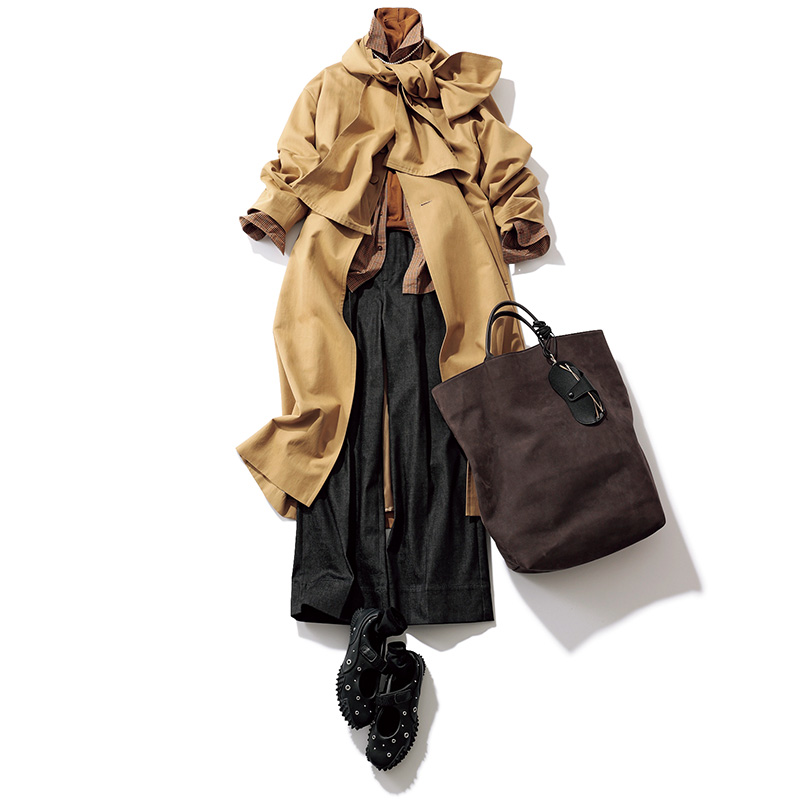 スニーカー¥15,400(アディダス オリジナルス/アディダスコールセンター)シャツ¥22,000(ザ ポーズ/ウィム ガゼット ルミネ新宿店)パンツ¥26,400(カデュネ/カデュネ プレスルーム)コート¥59,400(サロン アダム エ ロペ)バッグ¥66,000(ザハイライツ)