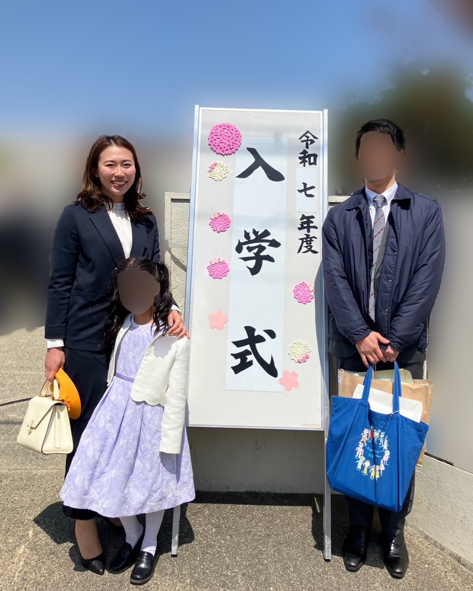 「卒園用も入学用もジレなど新しい服を買って準備していたのですが、いざ当日に着てみたらなんだかしっくりこず。娘のバレエの発表会などフォーマルなシーン用に持っていたスーツを引っ張り出して着てみたら、やっぱりこれが一番だと感じ、結局どちらも同じもので参加することに。長男のときは和装の方が多かったので、スーツは浮いちゃうかなと思ったのですが、今回は洋装の方も多くて心配はいりませんでした。式後に謝恩会があり、和装だと着替えに一度戻らないといけなかったので、その点でもスーツは楽でした」飯田綾子さん/37歳・航空関係勤務(9歳の男の子と6歳の女の子ママ)