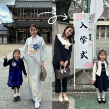 「夫の年単位の出張に家族でついて行ったので、昨年の卒入園は名古屋ではなく東京で参加しました。東京での式は初めてだったので、何を着ようか迷いに迷ってしまい……。当初は洋装のつもりでしたが、最終的に間違いなさそうな和装で参加することに。同じ着物なら名古屋からの荷物も少なくて済むし、準備が楽だと思ったのも理由です。卒園は終わりではなく入学へと続く通過点と考えているので、その時間の流れを感じるためにも同じ着物にしたのは正解だったかなと思います」奥平成美さん/38歳・主婦(9歳と7歳の男の子ママ)