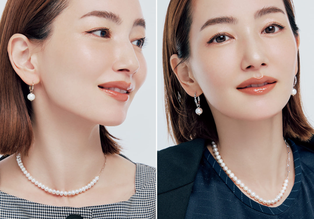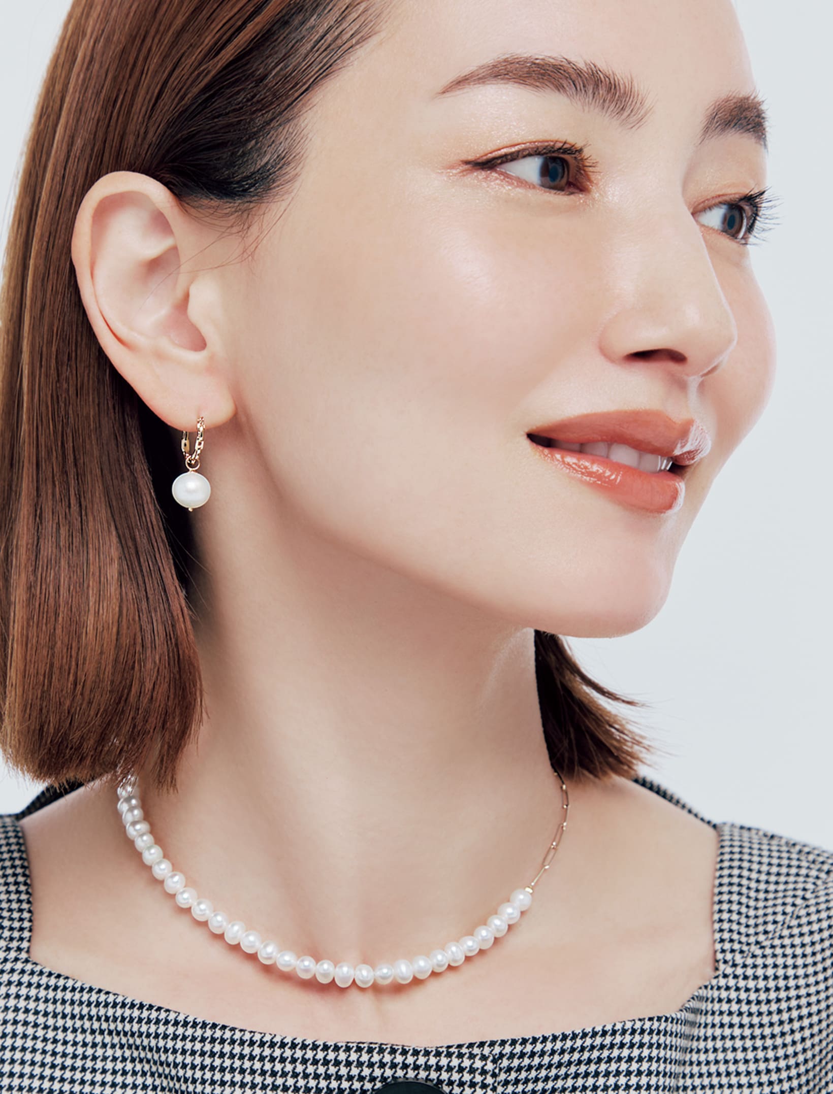 VERYと4℃が数カ月をかけ完成させた、コラボジュエリー第三弾となるパールピアスは、まさにこの連載のテーマを体現する逸品に仕上がりました!先月ご紹介したコラボのパールネックレスとセット使いすれば、完璧なジュエリーコーディネートに。耳元でパールが揺れるたびに、柔らかな光と優しげな表情を添えてくれます。