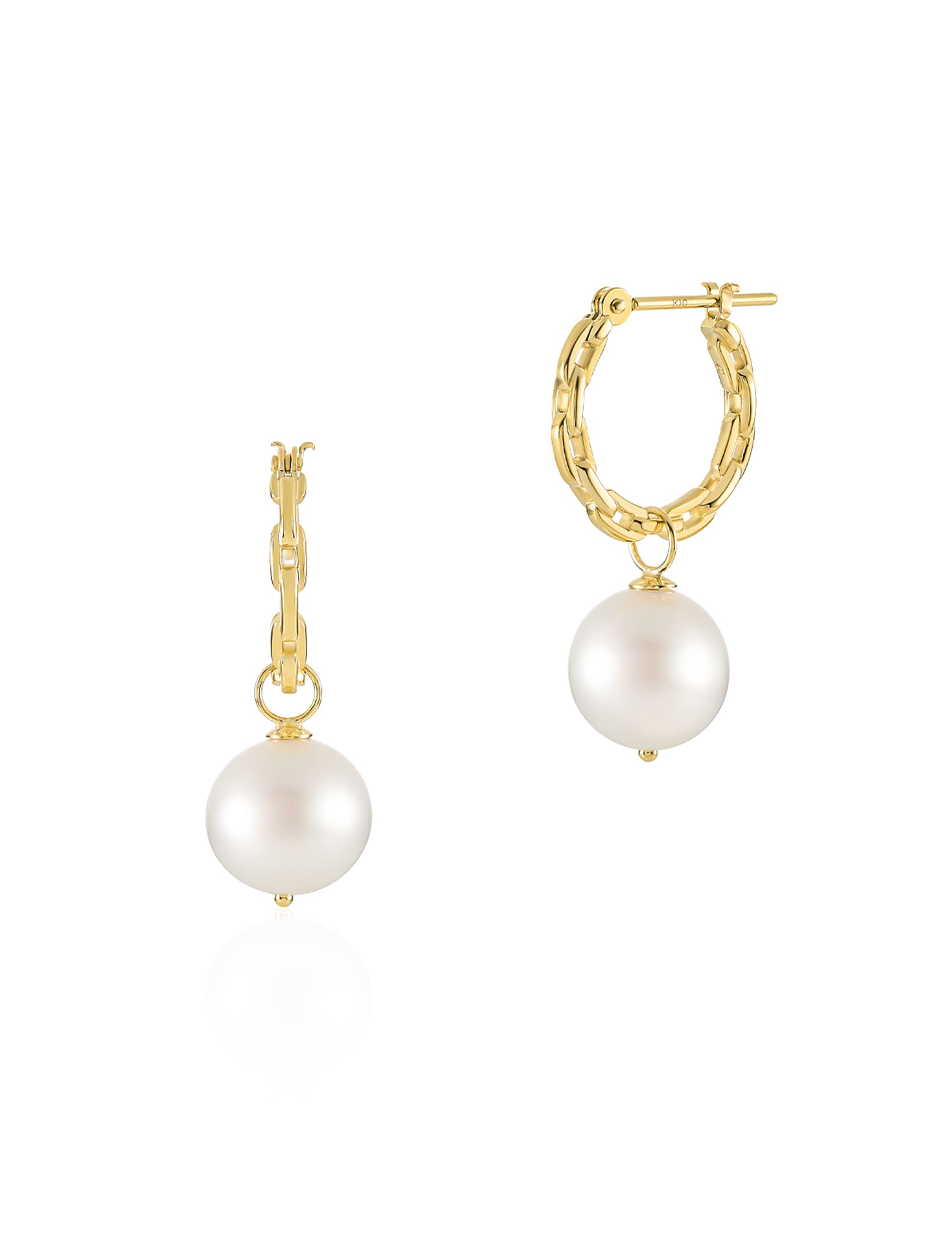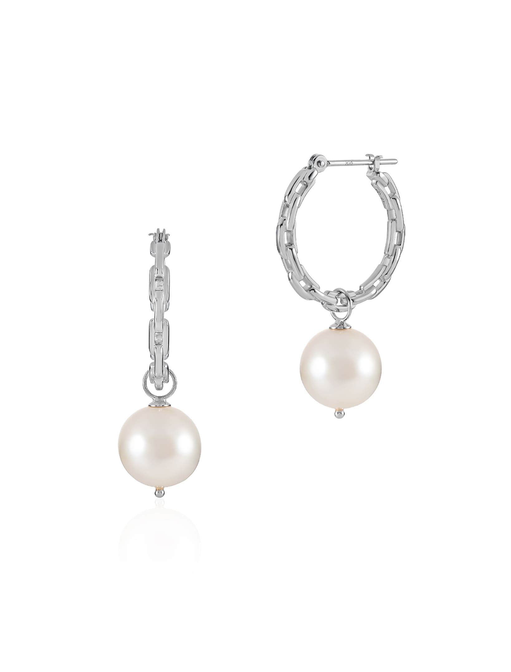 ベースはありそうでなかった、チェーンのフープピアス。パールのチャームを取り外してフープだけでシンプルに纏ってもよし、チャームの有無で左右でアシンメトリーにしても楽しい。
