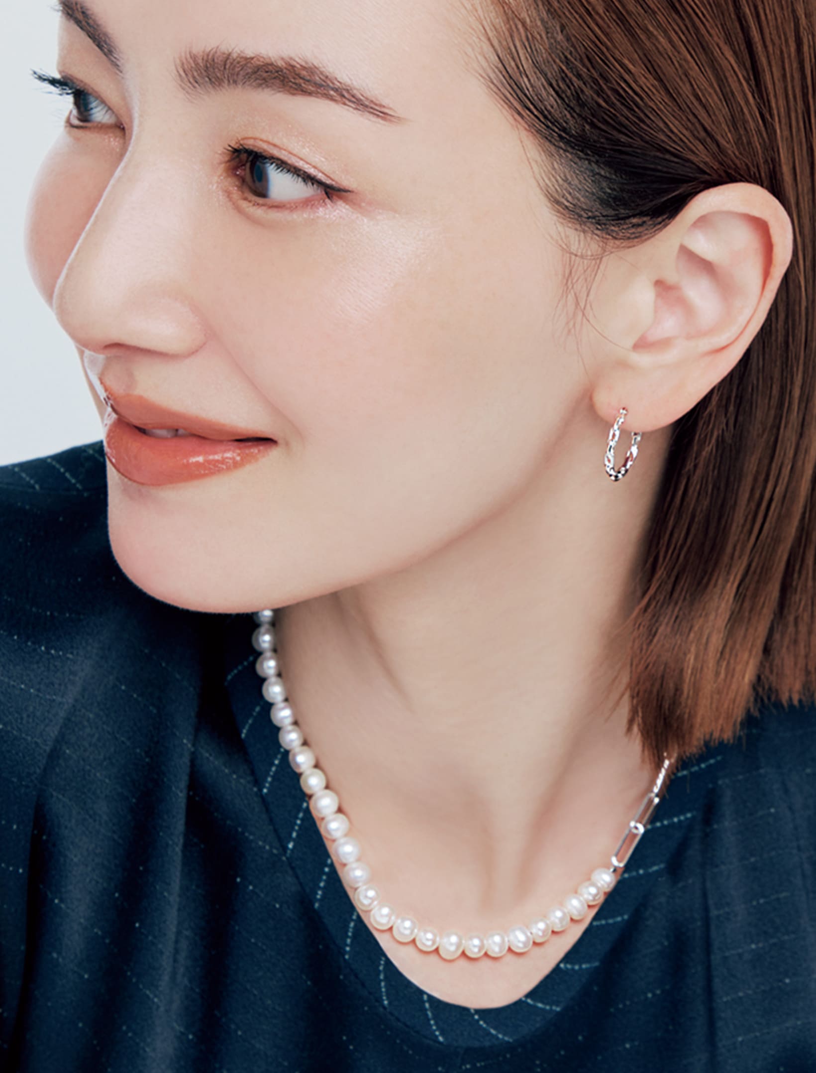 ピアス〈SV×淡水パール〉¥27,500ネックレス〈SV×淡水パール〉¥33,000※ともにオリジナルサブバッグ付き〈数量限定〉(ともに4℃/エフ・ディ・シィ・プロダクツ)トップス¥33,880ジャケット¥87,340(ともにテラ/ティースクエア プレスルーム)
