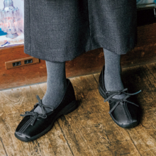 いっさいの金具を排除した究極のシンプル、これこそ学校ママに必要な一足。冠婚葬祭にも使えるからひとつ持っておくと安心です。メリージェーンシューズ¥36,300(シーセイ/アイネックス)