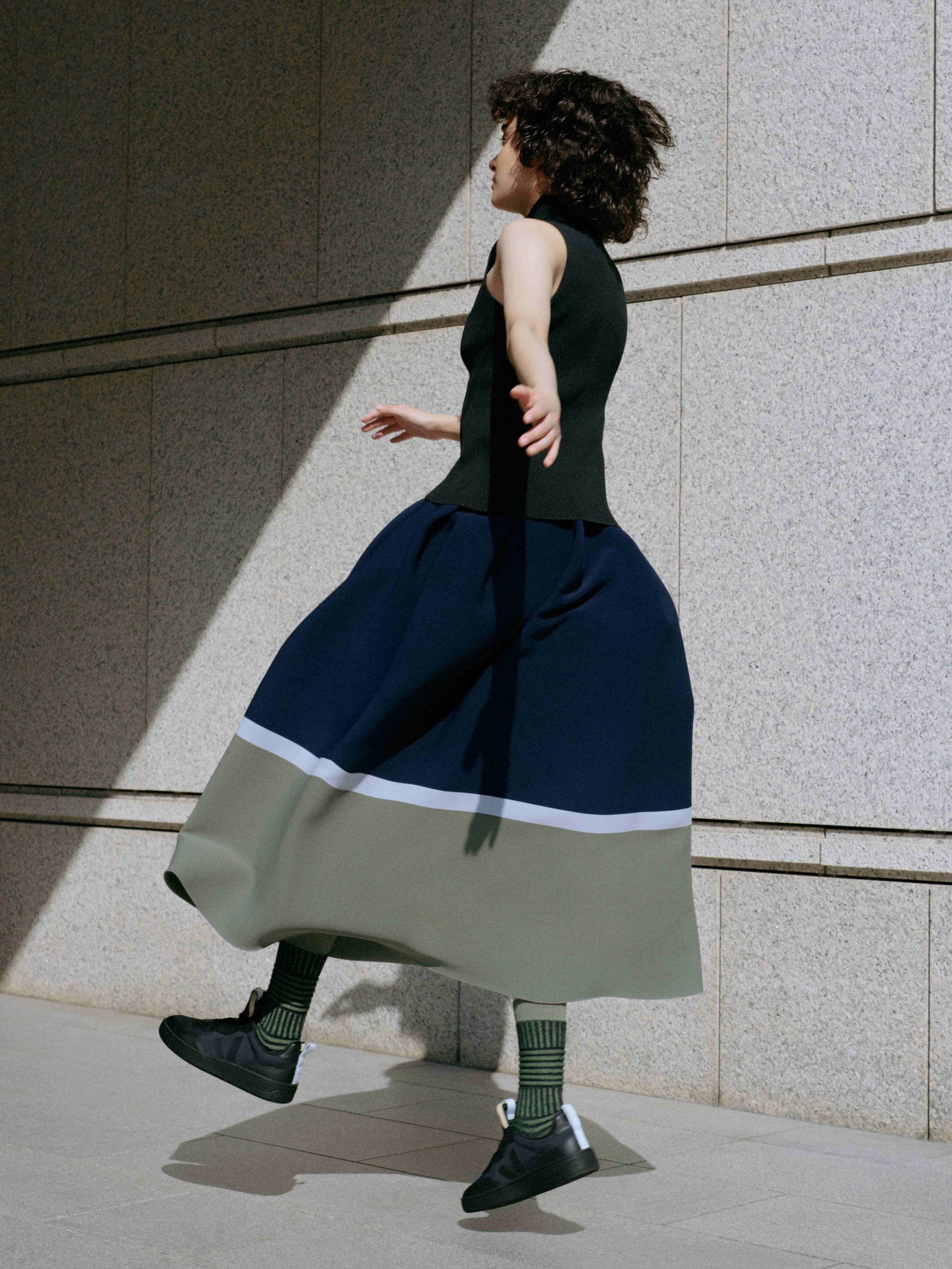 カラーは2色展開。淡いブルーのアクセントが効いたシックな表情のブラックは平日の通勤シーンでも活躍しそう。クリーンな印象のナチュラルは、軽やかに過ごしたい休日にぴったり。キレイ色のワンピースにもマッチします。春の軽快ムードに向けて、CFCLの美学が宿る特別なスニーカーをチェックしてみて。