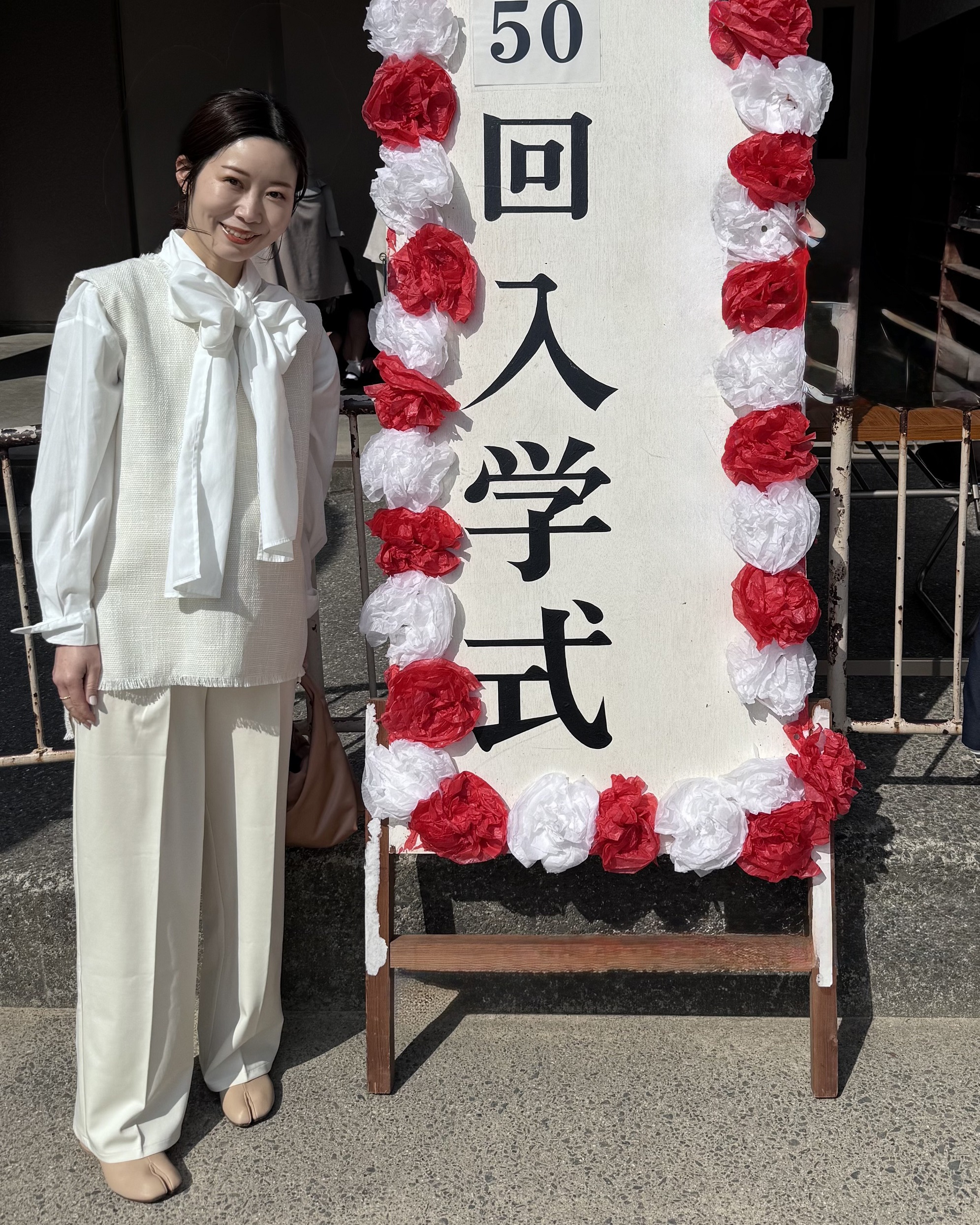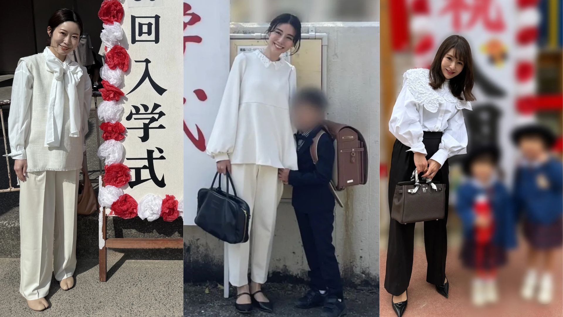 2025年春に入園式・入学式を迎えたママたちにどんな服で出席したか取材してみると、関西では記念撮影をすることを考えて、写真映えする白を上半身にもってきたという人が多かったよう。なぜその服を選んだのかに加えて小物使いも教えてもらいました。