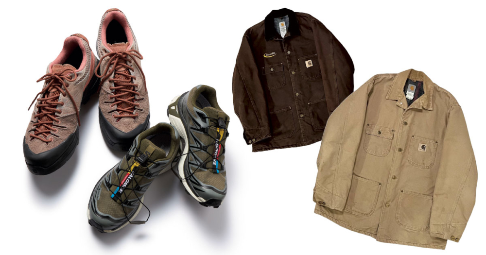 服飾関係に勤める夫の目利きで選ばれたカーハートのヴィンテージジャケットは似たデザインを色違いで。タフ&イージーケアのワークウェアだから、汚れを気にせずに着られて子どもとアクティブに過ごす日も頼りにしています。(高木麻衣さん・1歳の女の子ママ)※読者私物