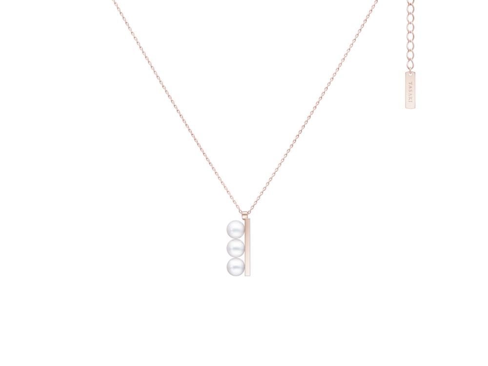 3珠のあこや真珠を縦に連ねたデザインの「バランス プラス ネオ」ペンダント。スマートなサイズと端正な雰囲気で、きちんと感が求められる学校行事に、華やかさが欲しい謝恩会に、そしてリラックスして過ごしたい日常にも、とあらゆるシーンに使いやすい1本です。