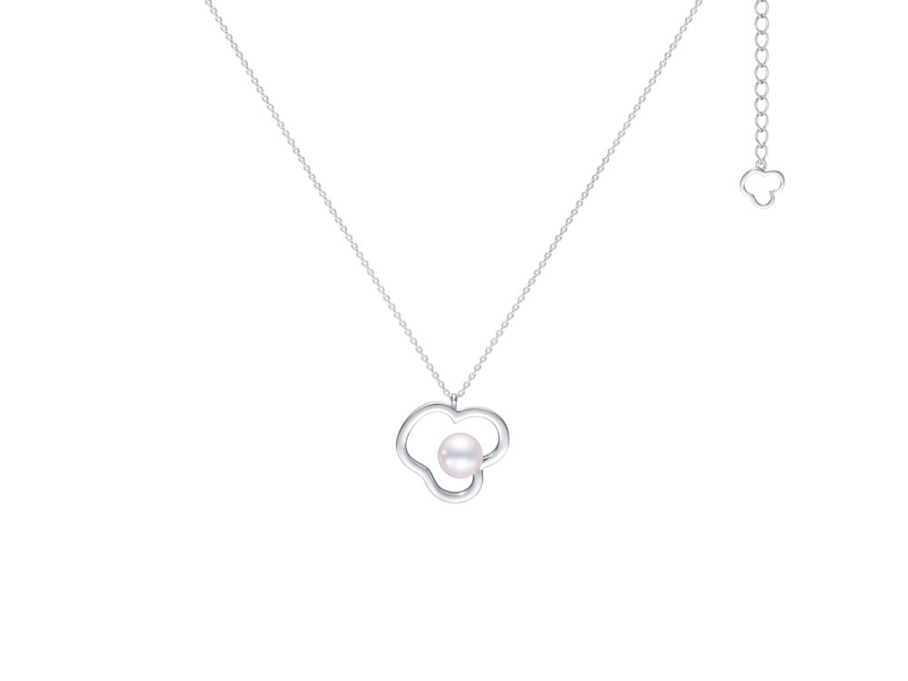 編集部内でも大注目の「チャンツ」コレクション。こちらは、クリーンなホワイトゴールドで描かれたフラワーの輪郭に大粒の艶めくパールがセットされたペンダント。気品溢れる凛とした佇まいと優しい雰囲気を兼ね備えているから、出会いが増える新学期にピッタリです。