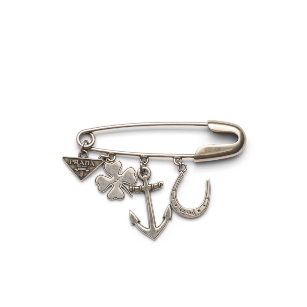 【PRADA】ロゴや馬蹄などのラッキーモチーフが揺れる安全ピンタイプ