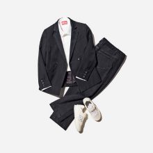 「入学式の朝にも下の子たちの送迎があったのと、式ではスリッパに履き替える必要があったため、脱ぎ履きの楽ちんなプラダのローファーを選びました。アンドレスドのセットアップにユニクロのジャケットを羽織ると決めていたので、すっきり見せるためにソールの厚いものを選んでいます」沢村美緒さん・35歳(9歳と7歳の女の子、4歳の男の子のママ)