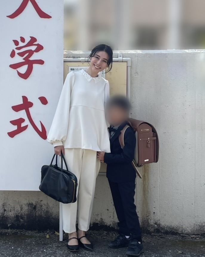 「入学式シーズンのトレンドがフラットシューズだったことと、息子の通う小学校まで、距離があっても徒歩で行かなくてはいけなかったため、ファビオルスコー二のフラットシューズを履きました。校内でもスリッパに履き替えたり、立ったり歩いたりする時間が長かったので、無理のない履きなれた靴にして正解でした」池田名加さん・39歳(9歳と7歳の男の子のママ)