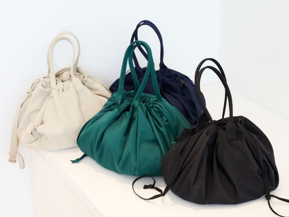 荷物が増えたら、ひもを緩めてトート風に。光沢のあるクタッとした生地のおかげで、スポーティなコーデに合わせても品の良さが保てます。シンプルなデザインなのでサブバックにするのも良さそうです。