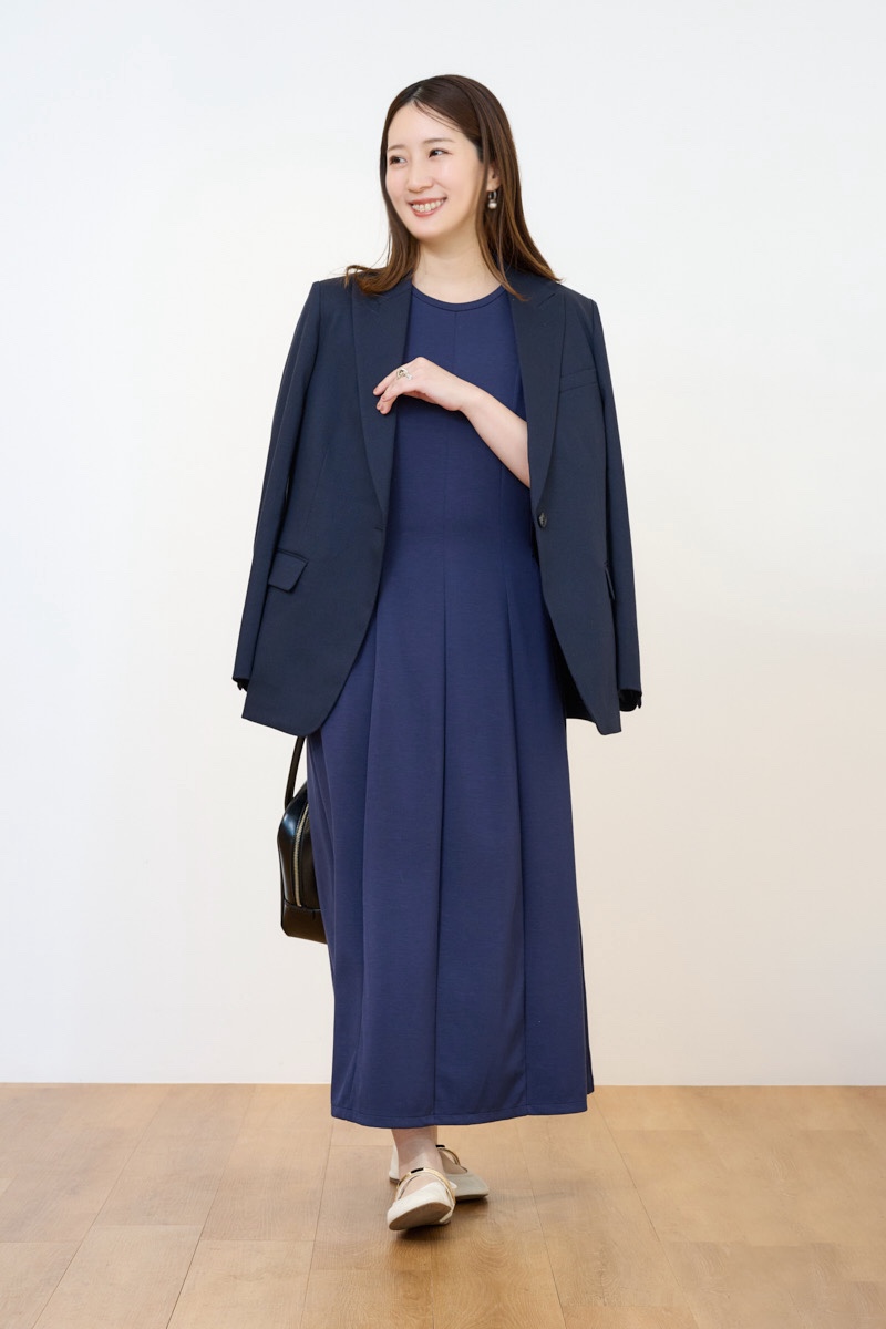 【ワンピースコーデ】テーラードジャケット¥9,990 フィットアンドフレアワンピース/ノースリーブ¥4,990(ともにユニクロ:シー/ユニクロ)その他ライター私物