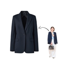 【テーラードジャケットコーデ】テーラードジャケット¥9,990 フィットアンドフレアワンピース/ノースリーブ¥4,990(ともにユニクロ:シー/ユニクロ)その他ライター私物