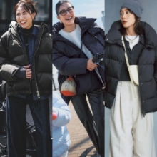 【ママ】ダウンコート¥69,300(ル フィル/ル フィル ニュウマン 新宿店)Tシャツ¥14,300(マノフ/クラネデザイン)パンツ¥25,300(プラージュ/プラージュ 代官山店)眼鏡¥42,900(プロポ/プロポデザイン)ピアス¥49,500(リューク)バッグ¥3,190(コブマスター/ギャレット)【女の子】コート¥3,990(ユニクロ)ニット¥5,990(GapKids)その他/スタイリスト私物