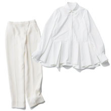 高機能素材のペプラムブラウスと