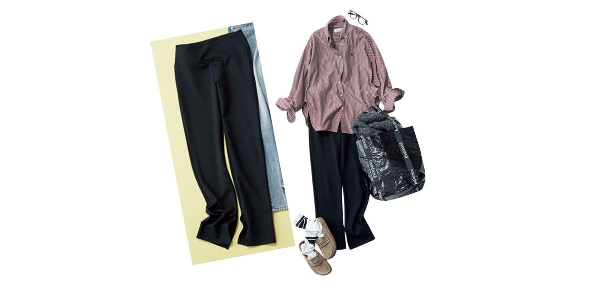 家事に徹する日はレギンスが一番。洗えてノンアイロンで着られるシャツとスッピン隠しの伊達メガネが主婦の強い味方に。