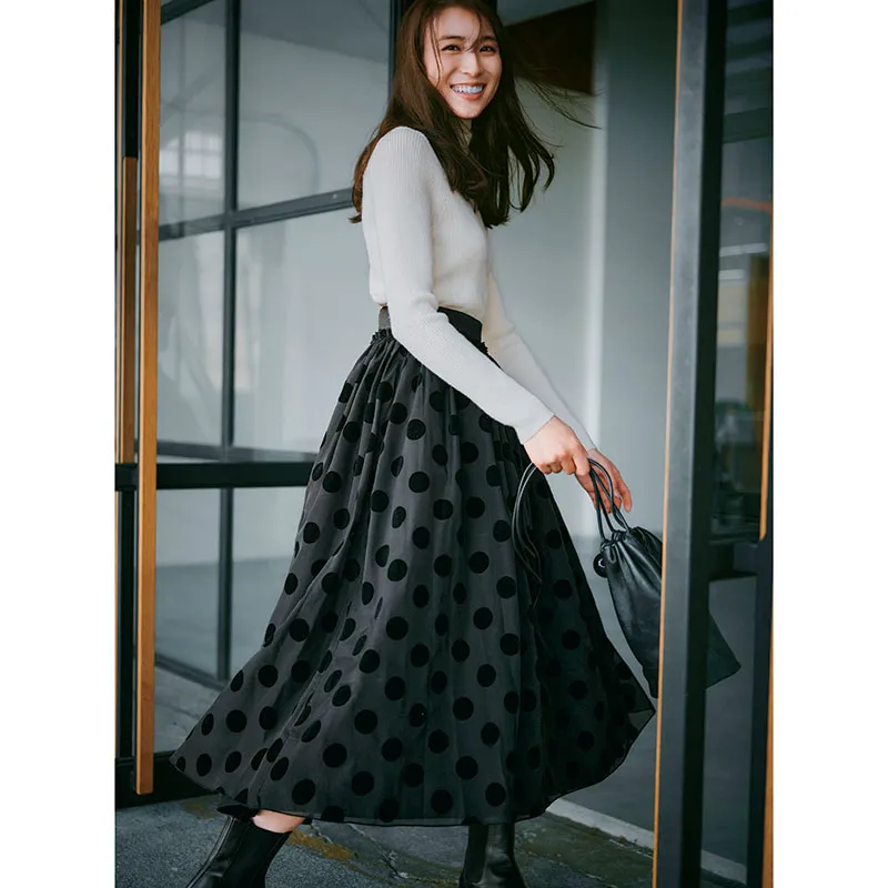 Aラインの黒スカートは
