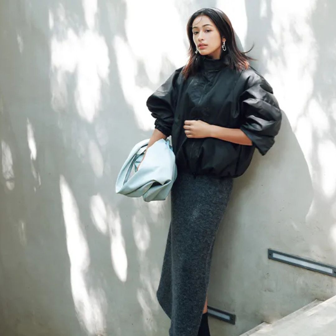 ブルゾン¥17,600(ヘレイアム╱アダストリアカスタマーサービス)スカート¥33,000(クローズド╱トヨダトレーディング プレスルーム)ピアス¥52,800(ブランイリス╱ブランイリス トーキョー)バッグ¥7,920(ミラ オーウェン╱ミラ オーウェン ルミネ新宿2店)ブーツ¥49,500(ペリーコ サニー╱アマン)