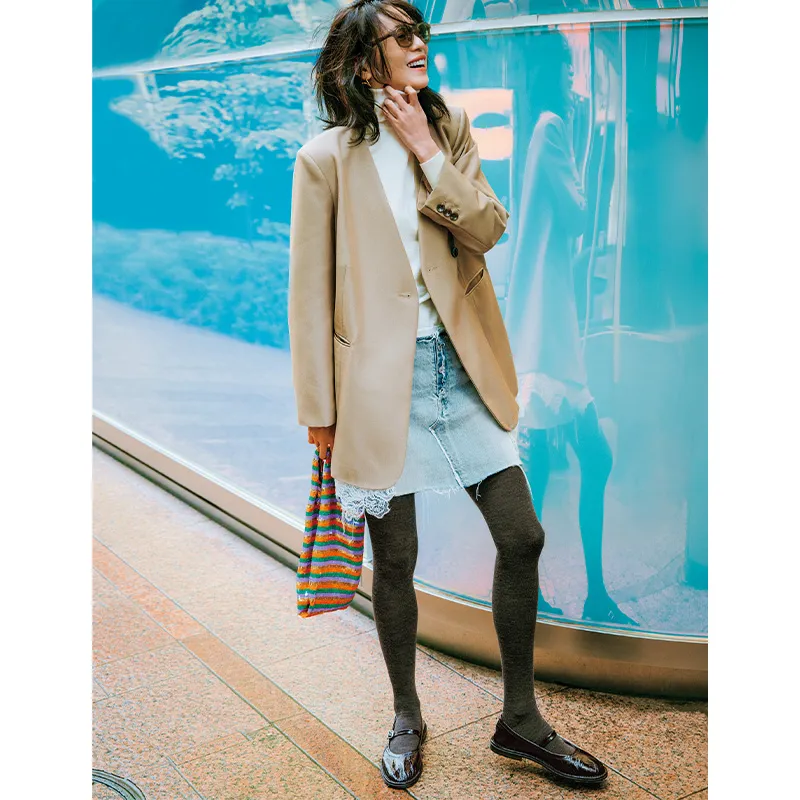 ストラップシューズ¥148,500(ピエール アルディ╱ピエール アルディ 東京)タイツ¥5,500(ブルーフォレ╱リトルリーグ インク)ジャケット¥41,800(プランクプロジェクト╱プランクプロジェクト 青山店)タートルニット¥34,100(スローン╱ザ ショップ スローン 新静岡セノバ店)ミニスカート¥53,900(マディソンブルー)サングラス¥68,200(トム フォード╱RHC ロンハーマン)ピアス¥40,700(ブランイリス╱ブランイリス トーキョー)バッグ¥95,700(アシシュ╱スーパー エー マーケット 青山)