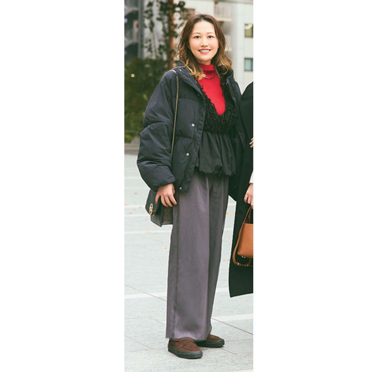 会社の同期で、育休中だという3名。「集合したらまず授乳室で各自ミルクを済ませ、13時に予約していた『TOOTH TOOTH BISTRO&CAFE』でランチを。洗練された空間と聞いていたので、オールホワイトで上品に」(北さん)「2人の子連れなので動きやすいようにパンツ一択。赤を差し色にして華やかさを意識しました。ランチ後は5階の“こもれびら”で子どもたちを遊ばせながら、私たちもお喋り♡」(一ノ瀬さん)「スリットスカートやブーツで都会的な印象に。解散後はフレグランスアイテムをチェックして帰ります」(西田さん)