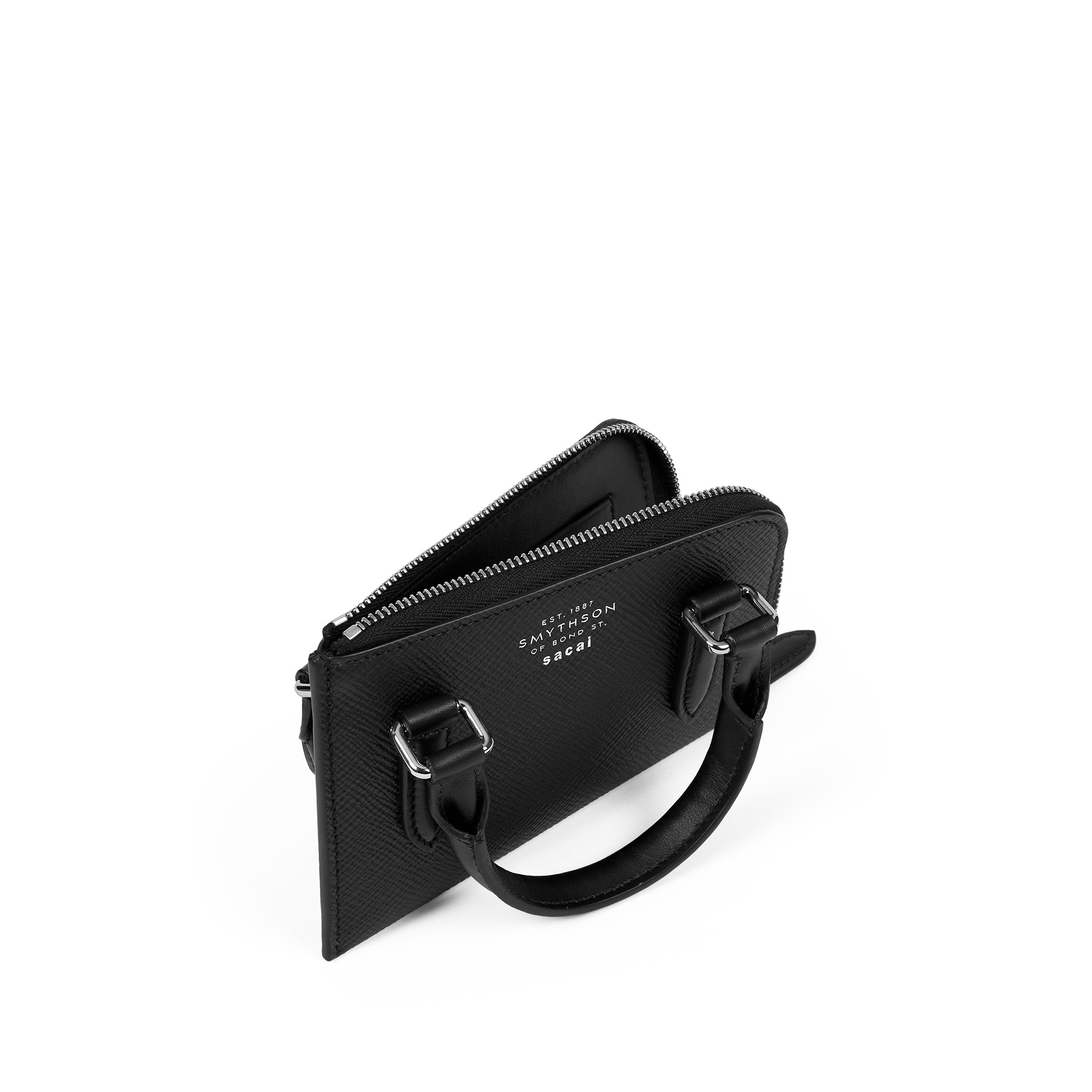 サカイがコラボレーションしたのは英国王室御用達のレザーグッズブランドSmythson(スマイソン)。パナマレザーを用いたポーチには同ブランドのブリーフケースから着想を得たハンドルがデザインされており、長く受け継がれてきた美学を感じさせるクラシックな佇まいが印象的です。財布として紙幣やレシートを収納したり、リップなどの小物を入れたりと使い道は自分次第。ハンドル部分がちょっとした持ち運びにも便利そう。