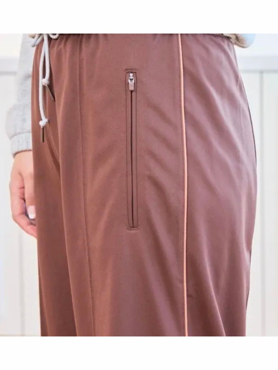 スポーティなムードが漂う、今季注目のトラックパンツ。ブラウン、オフホワイト、ブラックの3色展開で、カジュアルになりすぎず大人っぽくはけるのが魅力です。縫い付け仕様のセンタープレスや裾のスリットなど、キレイめディテールも充実。ドローコードでウエストサイズを調整できるほか、サイドにはファスナーポケットもついています。