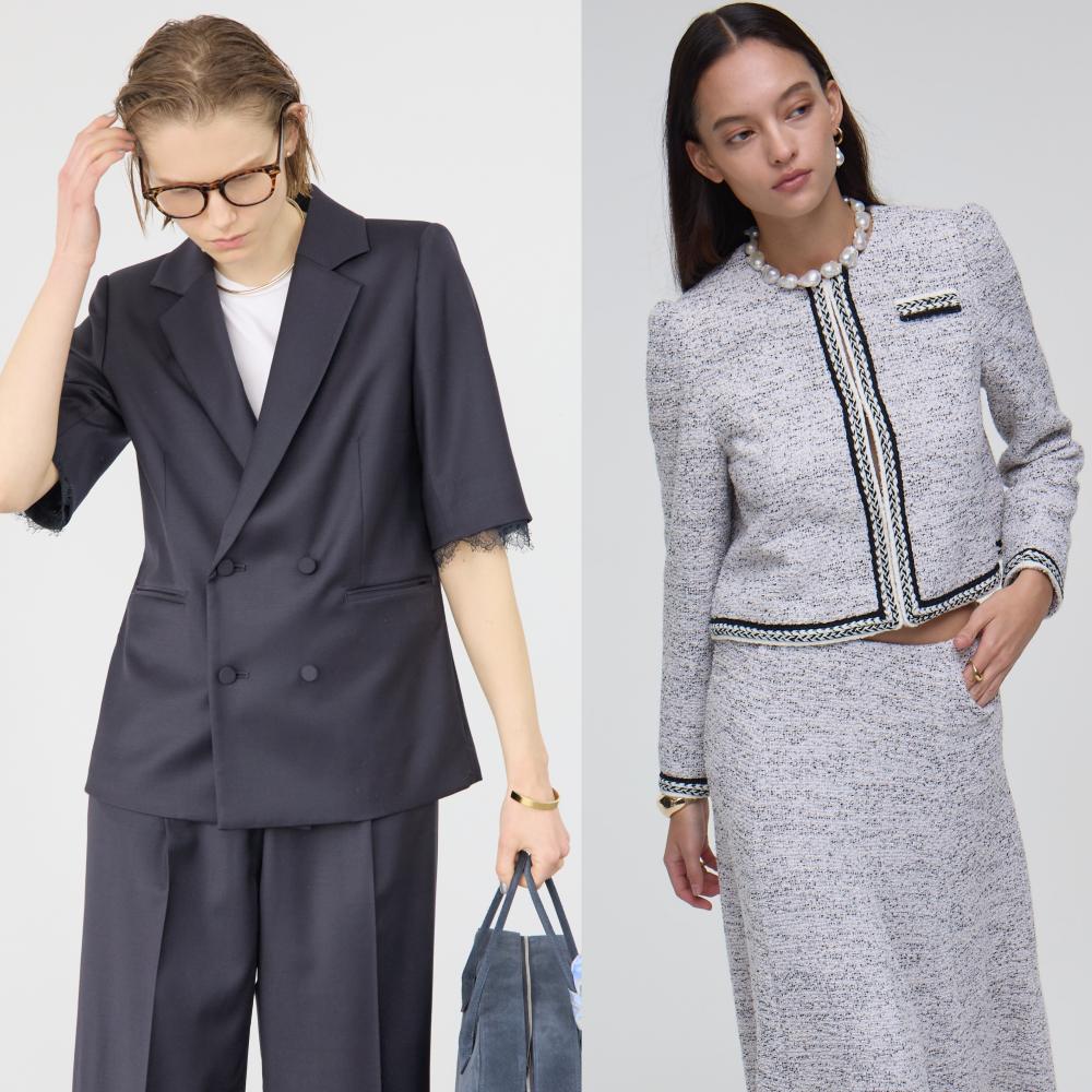 自分らしさを表現する大人の女性に向けたオケージョンウェアが展開されます。「サードマガジン」からクオリティーにこだわる凛としたコレクション “THE”の他、「ボーダーズ アット バルコニー」からは羽織るだけで品よく華やぐ、軽やかなニットツイードセットアップが登場。