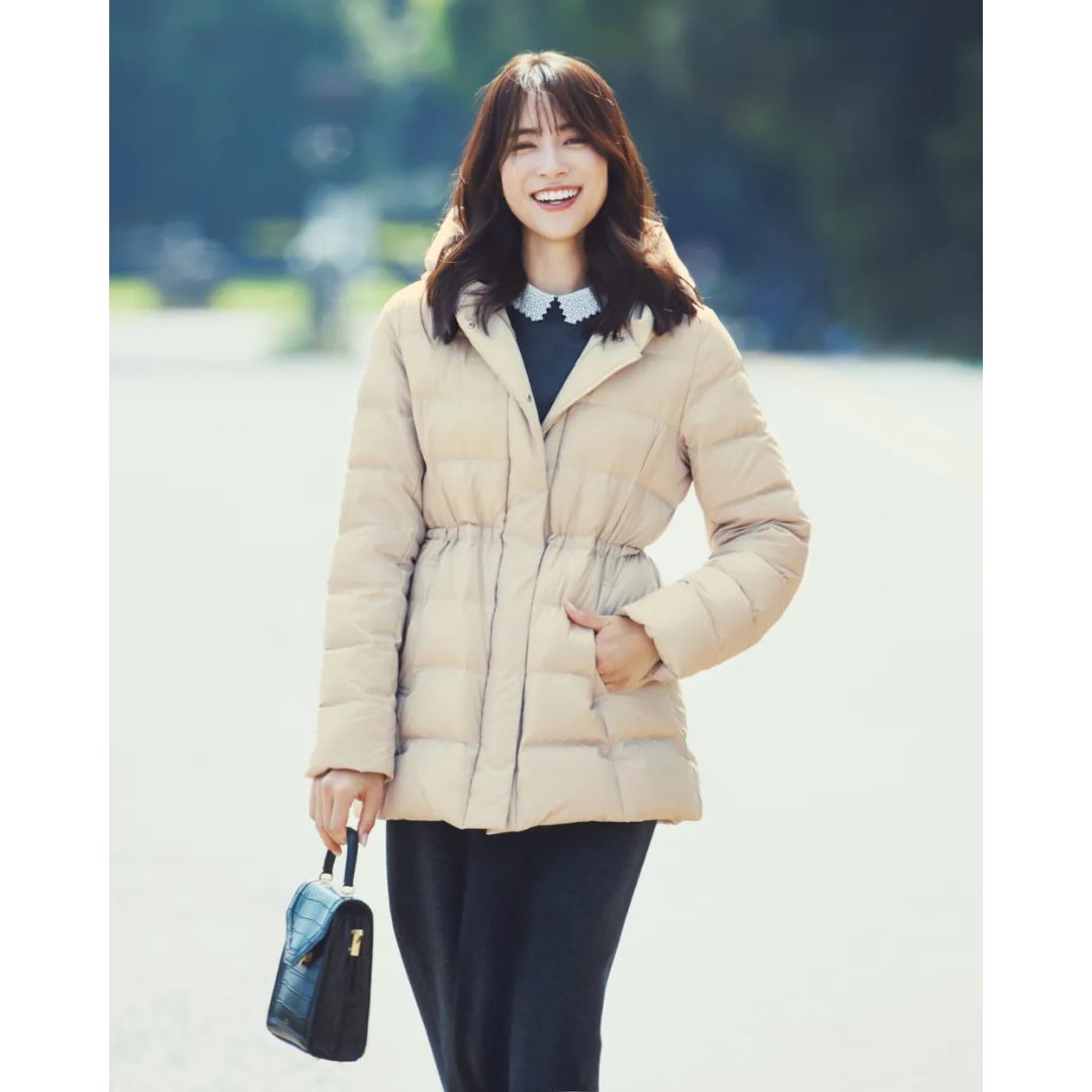 ダウンコート¥36,300 衿付きニット¥24,970 スカート¥23,980 バッグ¥17,930(すべて23区/オンワード樫山 お客様相談室)