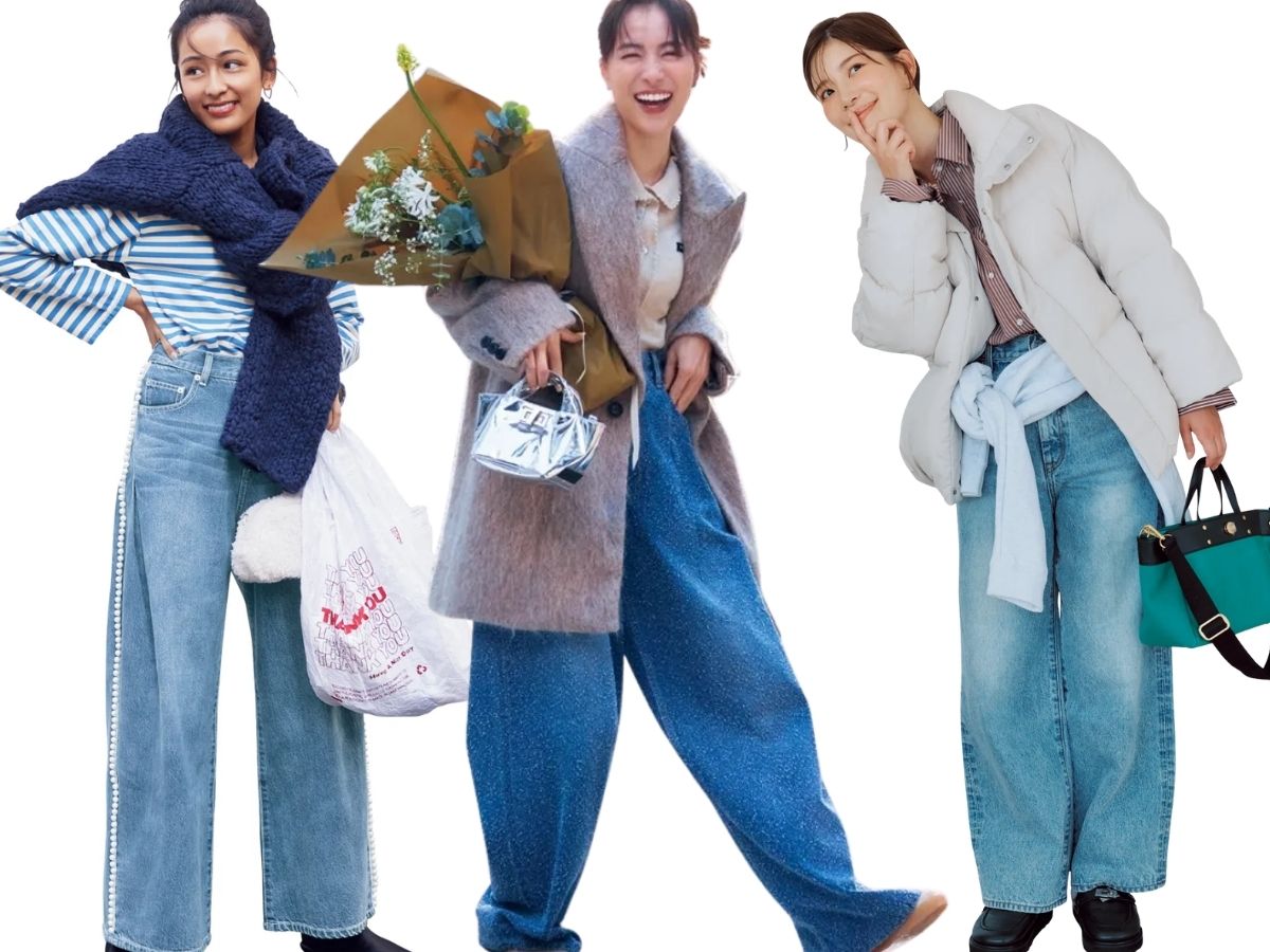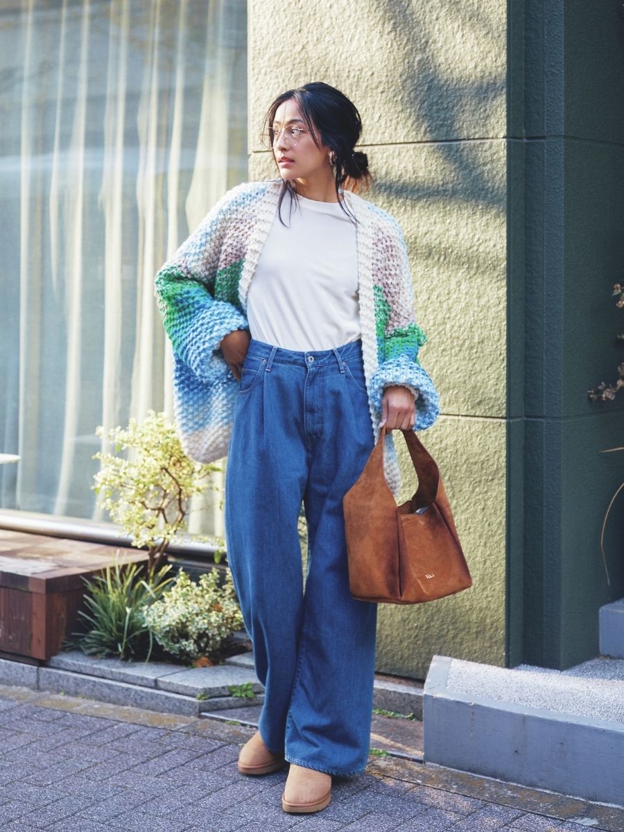 ざっくりカーディガン&ワイドデニムで三寒四温も乗り越える