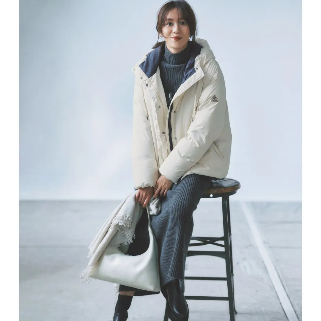 ダウン[COMBE(コンブ)]¥106,700 (ピレネックス/グリフィンインターナショナル)ワンピース¥53,900 (サクラ/インターリブ)バッグ¥17,160 (スタンドオイル/ル タロン 有楽町マルイ店)ブーツ¥29,700 (ダイアナ/ダイアナ 銀座本店)ストール¥24,200 (アソース メレ/アイネックス)ネックレス¥38,500 (アダワットトゥアレグ/ザ エディット ストア)