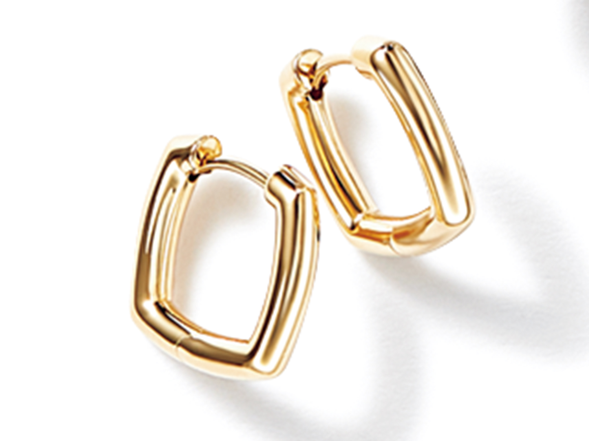 定番のフープの次は小さなゴールドスクエアで、“つけっぱなし”にも新たな選択肢。