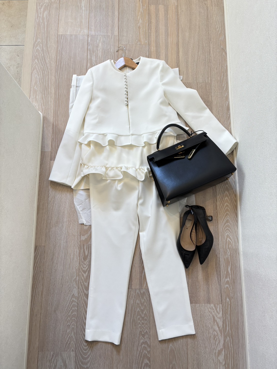 jacket & blouse & pants/YOKO CHAN shoes/FENDI bag/Hermès