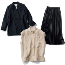 気温が20度近くなる日も出てくる中旬は、やっとコートを脱いで軽やかになれます。とはいえ、暖かい日があると思ったら次の日は寒かったり…。そんなときは中間アウターであるジャコットの出番。ビッグシルエットは羽織るだけで上級者の趣きが出て、忙しい期末シーズンにも頼れるはず。いつものトップスにグレースラックス、ジャコットで今っぽい通勤スタイルの完成です。ブラックやネイビーの定番カラーを選べば、3月、4月の卒入園・卒入学のセレモニーシーンにも着まわせて◎。
