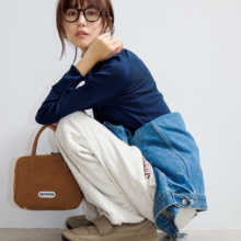 レギンスパンツ¥9,680(ザハイライツ)共布ベルトつきコート¥79,200(ブロッサム)スウェットトップス¥28,600(エイトンステイプルズ)肩に巻いたカーディガン¥148,500(オスロー/フィルム)メガネ¥62,700(ミュウミュウ/ルックスオティカジャパン カスタマーサービス)バッグ¥77,000(コーチ/コーチ・カスタマーサービス・ジャパン)バッグにつけたキャップ¥7,590ソックス¥3,300(ともにSEA/エスストア)バッグにつけたヘアクリップ¥18,700(アレクサンドル ドゥ パリ/アレクサンドル ドゥ パリ GINZA SIX店)スニーカー¥15,400(アディダス/アディダス コールセンター
