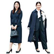 もう一つの注目アイテムが「ネイビーのダブルブレストジャケット」です。これは従来のセレモニーウェアの枠を超え、ビジネスシーンや日常のきちんとした場面でも活用できる汎用性の高さが魅力。このジャケットには、大ぶりのボウタイブラウスを合わせていただくのがおすすめ。元々は名古屋エリアのお客様から「衿元に華やかさが欲しい」というご要望を多くいただきトライアル展開したところ大変好評で、現在では全国展開しています。大ぶりのボウタイは、ジャケットから覗かせるだけで、フォーマル感と華やかさを演出できる優れもの。23区では豊富なサイズ展開もご用意しておりますので、ぜひ店頭でスタッフにご相談ください。