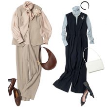「浮かない・迷わない・時短」。安心要素が三拍子揃ったスーツ派ママはきちんと感の中にほんのり自分好みの甘さを漂わせているのが印象的です。