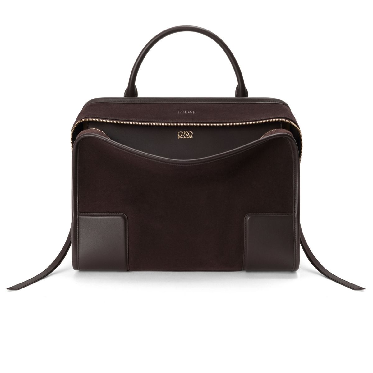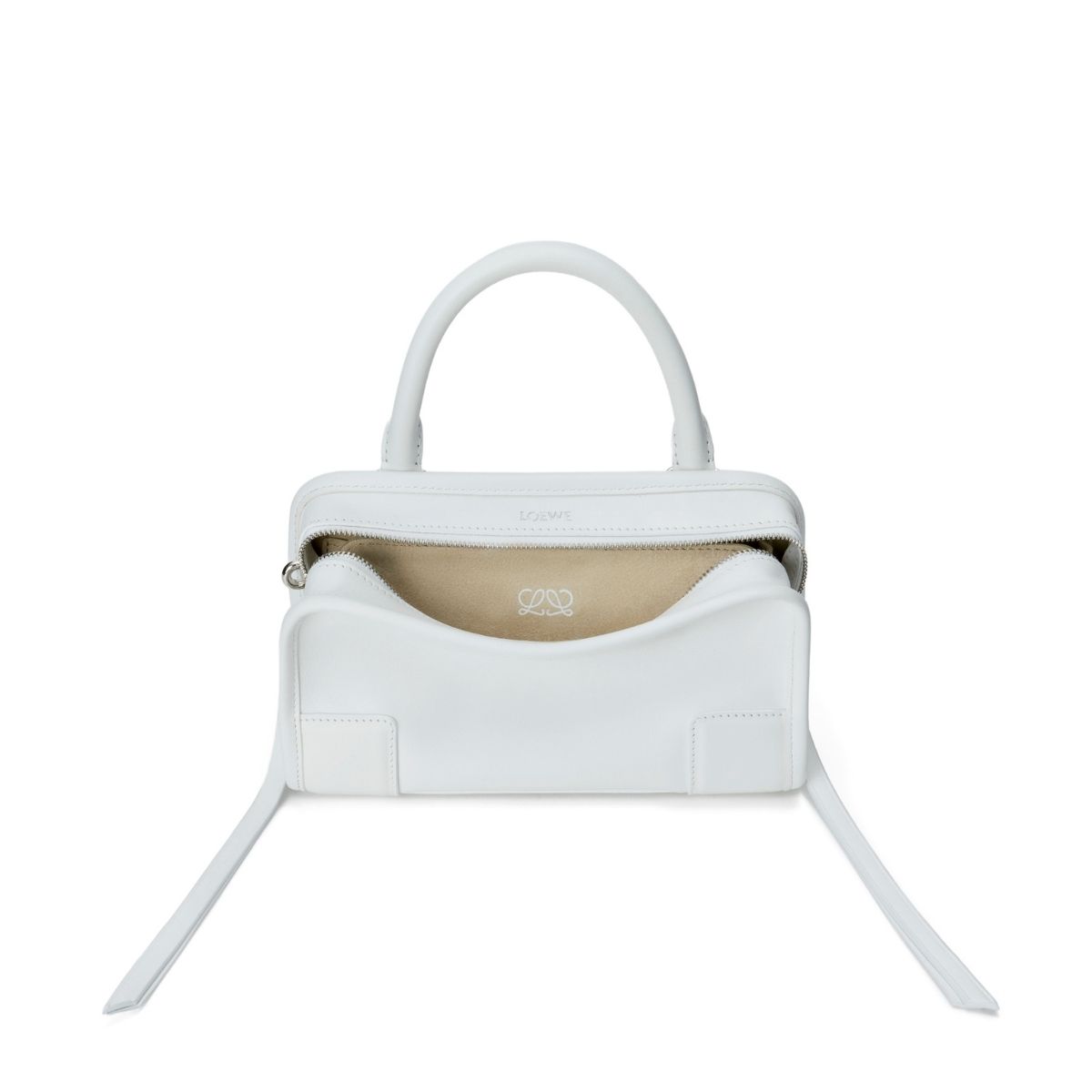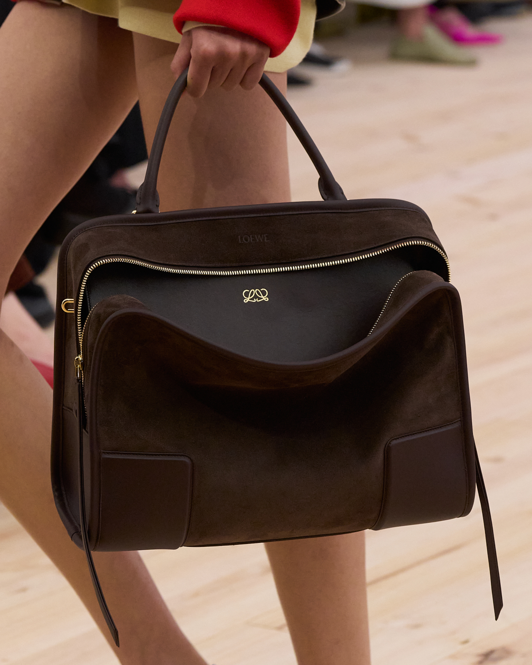 さらに、ショートハンドル、着脱可能なショルダーストラップ(スモール、ラージのみ)とクロスボディストラップによって、手持ち、肩掛け、斜め掛けの最大3通りの使い方が可能。子どもと過ごす日は両手がフリーになる斜めがけで、友達とホテルランチに行く日には手持ちで…などシーンに合わせて変えられます。どの持ち方でも美しいフォルムが崩れないのは、構造美としなやかさを両立させたロエベのクラフトマンシップならでは。