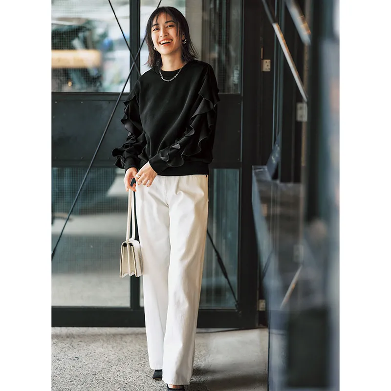 フリル袖が華やかなアクセントに。