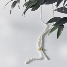 今回ご紹介するのはイニシャルなのにアートな印象に見える、大人のためのネックレス。子どもっぽかったりカジュアルすぎないのでパールと重ねてコンサバなコーディネートにもピッタリ。入学が決まった子どものイニシャルを、母としての象徴のパールと組み合わせてハレの日に着けるなんてちょっと粋な感じもしますよね。もちろんもっとラフに、Tシャツ+デニムに合わせても可愛い。3人の母であるデザイナー、シャルロット・シェネが作り出すイニシャルネックレスは曲線で作り出される柔らかい印象が母としてのコンサバスタイルのアクセントとして活躍しそうです。