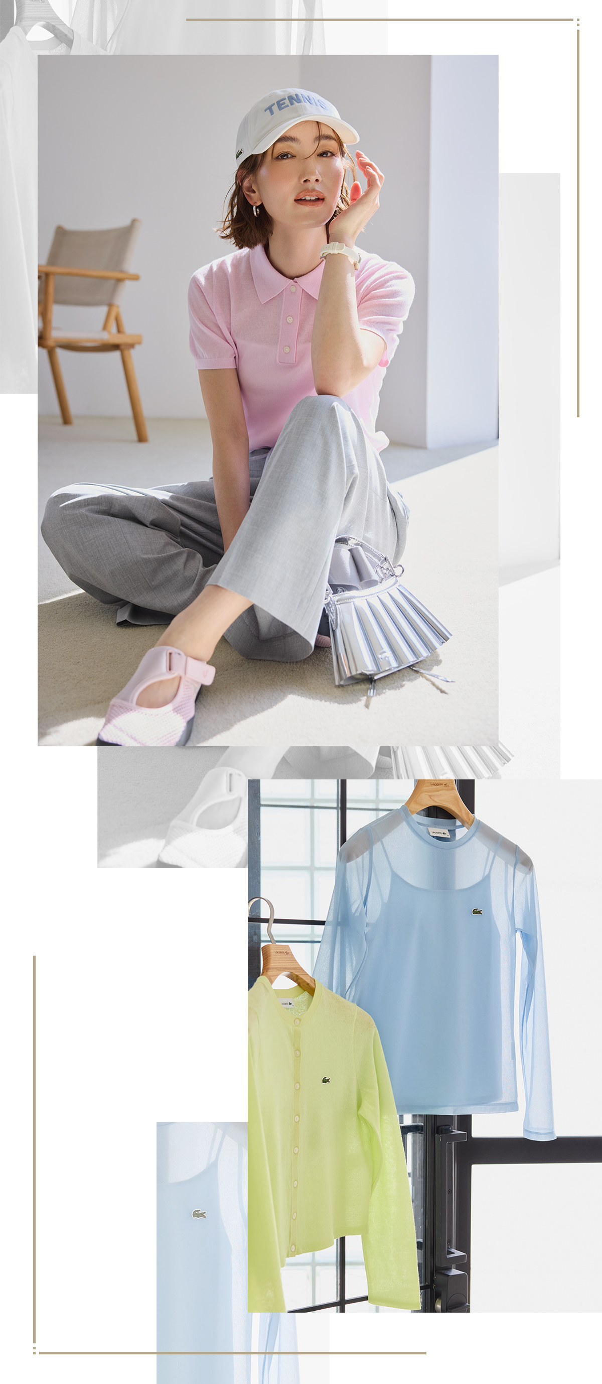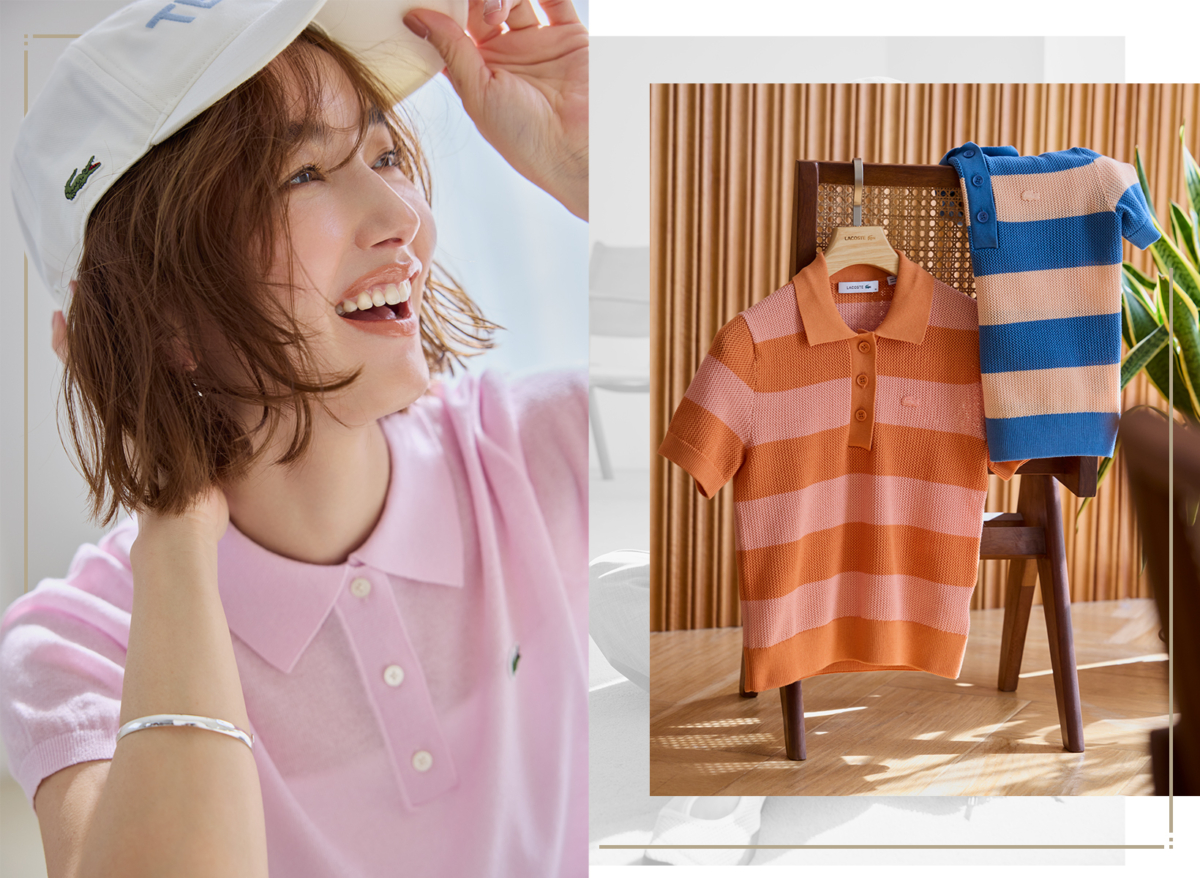 暖かくなってきたこの時期、ママたちはアクティブなイベントが目白押し。遠くの公園やピクニックに行くことも増え、遠足に運動会、ゴールデンウィークで長距離のお出かけも。そんなアクティブシーンにオシャレ心も満たしてくれるのは、やっぱりラコステ。トラディショナルなアイテムで品の良さをキープしつつ、スポーティ感あるトレンドの取り入れ方が絶妙で、アクティブなシーンにぴったり。これなら春のイベントを乗り切れます! (左)ピンクシアーポロシャツ¥18,700[※4月発売予定]キャップ¥9,900(ともにLACOSTE/ラコステお客様センター)その他スタイリスト私物(静物)ボーダーポロニット各¥22,000[※5月発売予定](ともにLACOSTE/ラコステお客様センター)