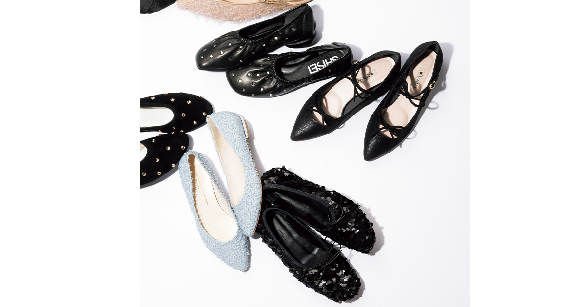 ツンとシャープなトウ×華奢リボンの甘辛な塩梅が絶妙!バレエコアな甘デザインでありながらシックにも履ける万能選手。