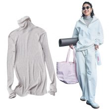 「最低3枚は重ねたい今季は、実はノースリタートルが重宝。腕周りもごわつかないからメリットしかない!スウェットとシャツの色味を揃えるとうまくまとまります」(池田さん)。ル フィルなら嬉しいカップ付き♡