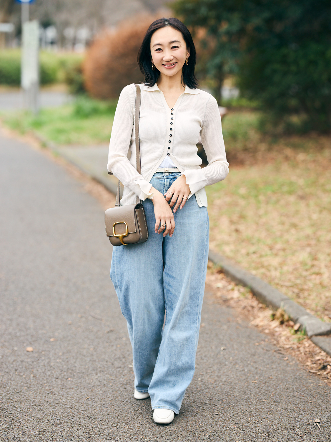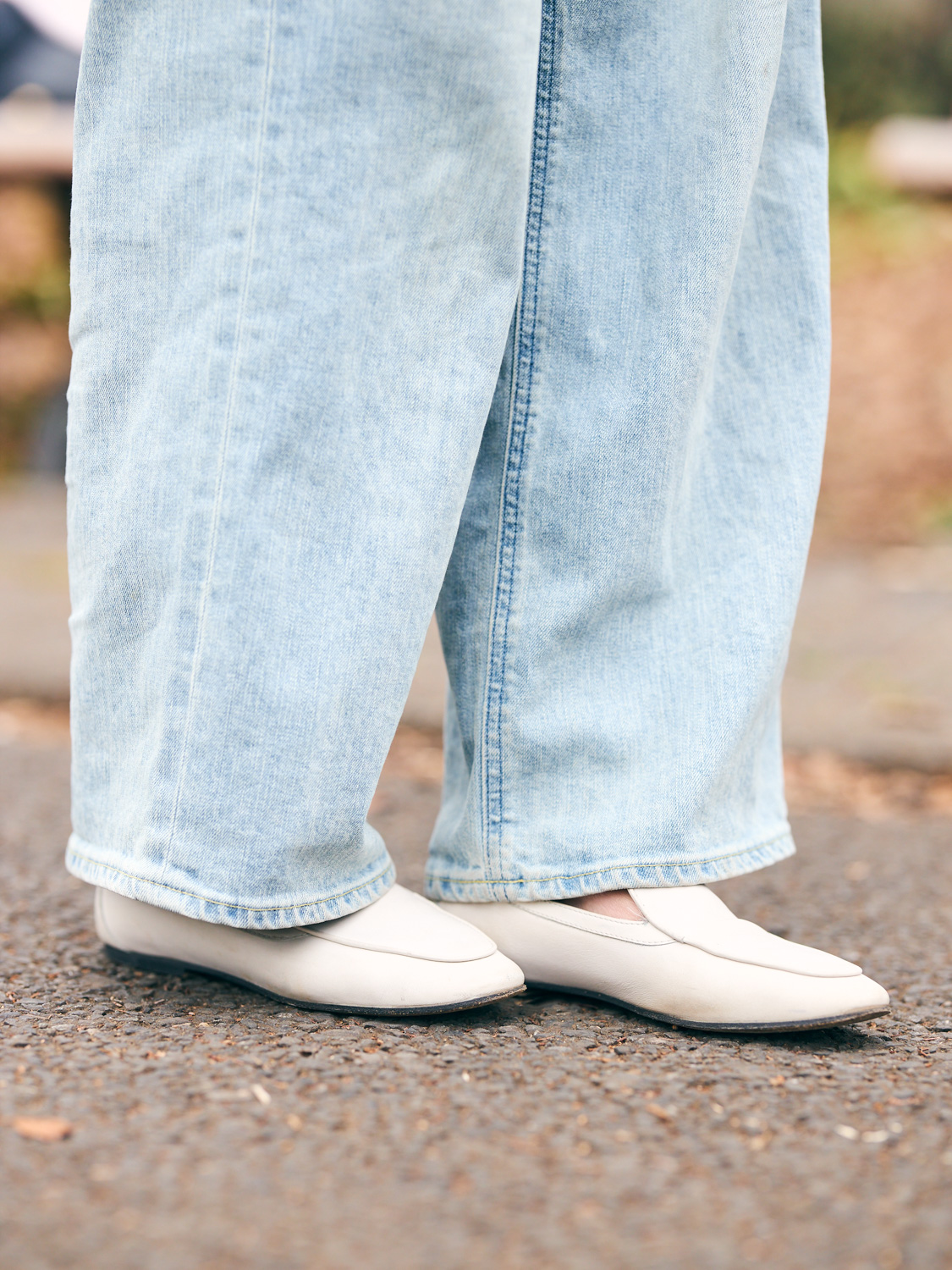 春らしさや軽やかさが、足元で簡単に取り入れられる白シューズ。汚れが気になりつつも、カジュアルなデニムコーデを上品で今っぽく仕上げてくれるところが魅力のようです。白でも気兼ねなく履ける理由や、お手入れ法なども伺いました。