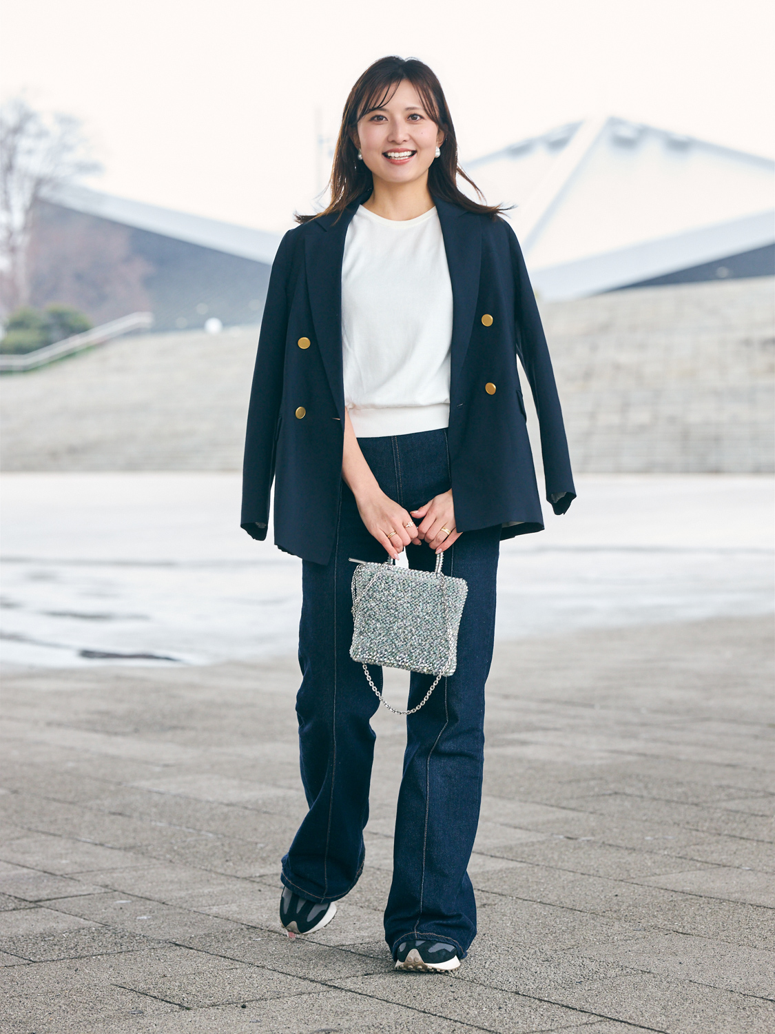 「実はずっと淡いブルーデニムばかり穿いていて、濃いめのインディゴは約15年ぶり! 普段は色よりもデザインやシルエット重視で選んでいるので、トレンドの移り変わりが早いデニムはプチプラ中心だったんです。年齢的なこともあり、最近は“ちょっといいデニム”を数本持つように。急いでいる朝もこれさえ合わせれば大丈夫!という、安心感を重視するようになりました」加藤綾美さん/会社員・164㎝(9歳と5歳の男の子ママ)
