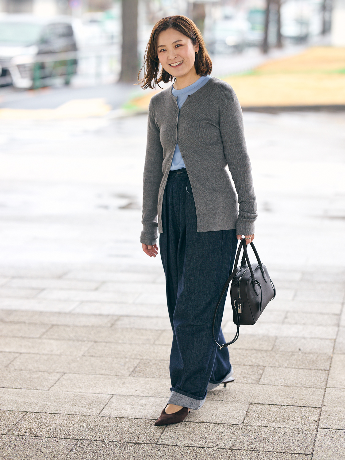 pants/MACHATT cardigan/STUNNING LURE tops/GU bag/The Row shoes/H&M