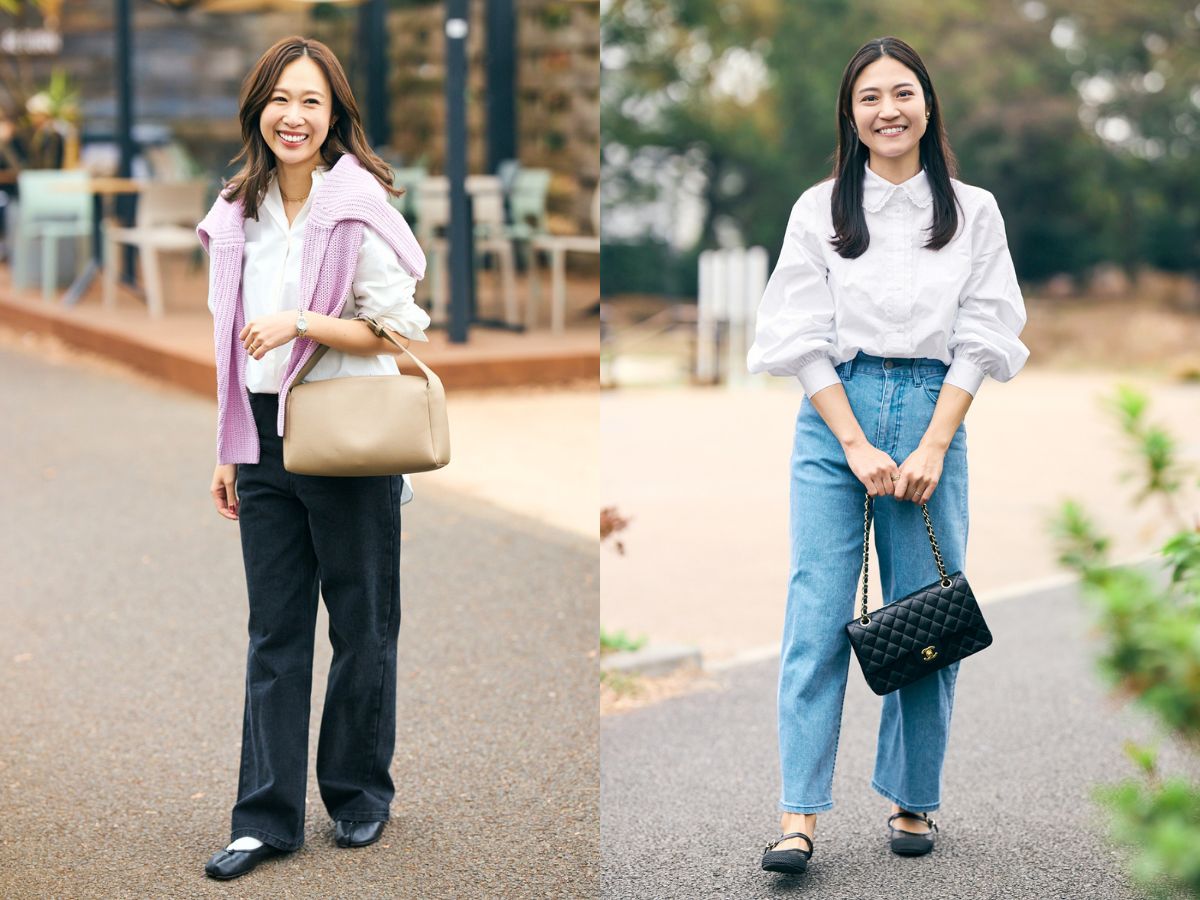 カジュアルなデニムも、ブラウスやシャツを合わせればぐっとキレイめな印象に。ちょっとしたおでかけにもぴったりな、ちょうどいいバランスが叶います。ママたちのリアルコーデとともに、着こなしポイントを紹介します。